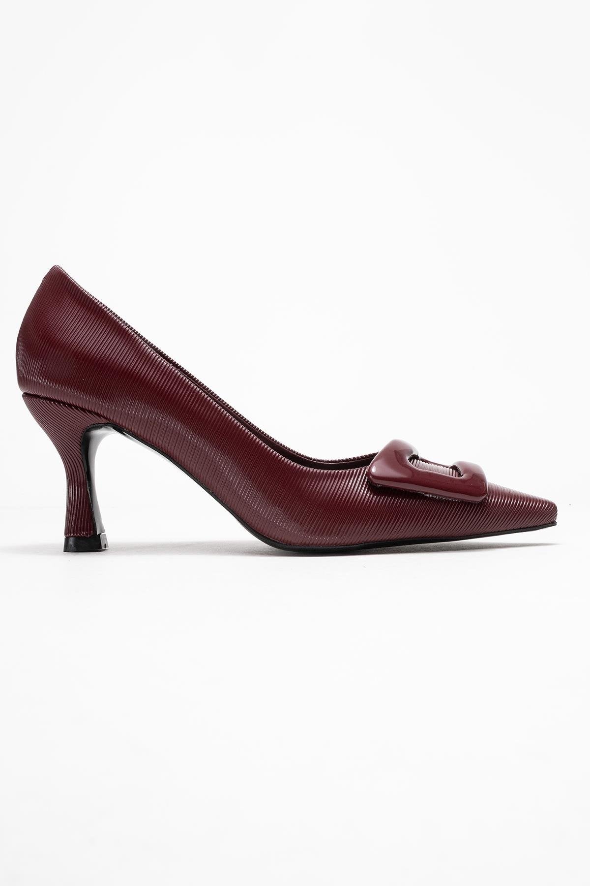 Astra - Burgundy Striped Buckle Heeled Pump (Women)