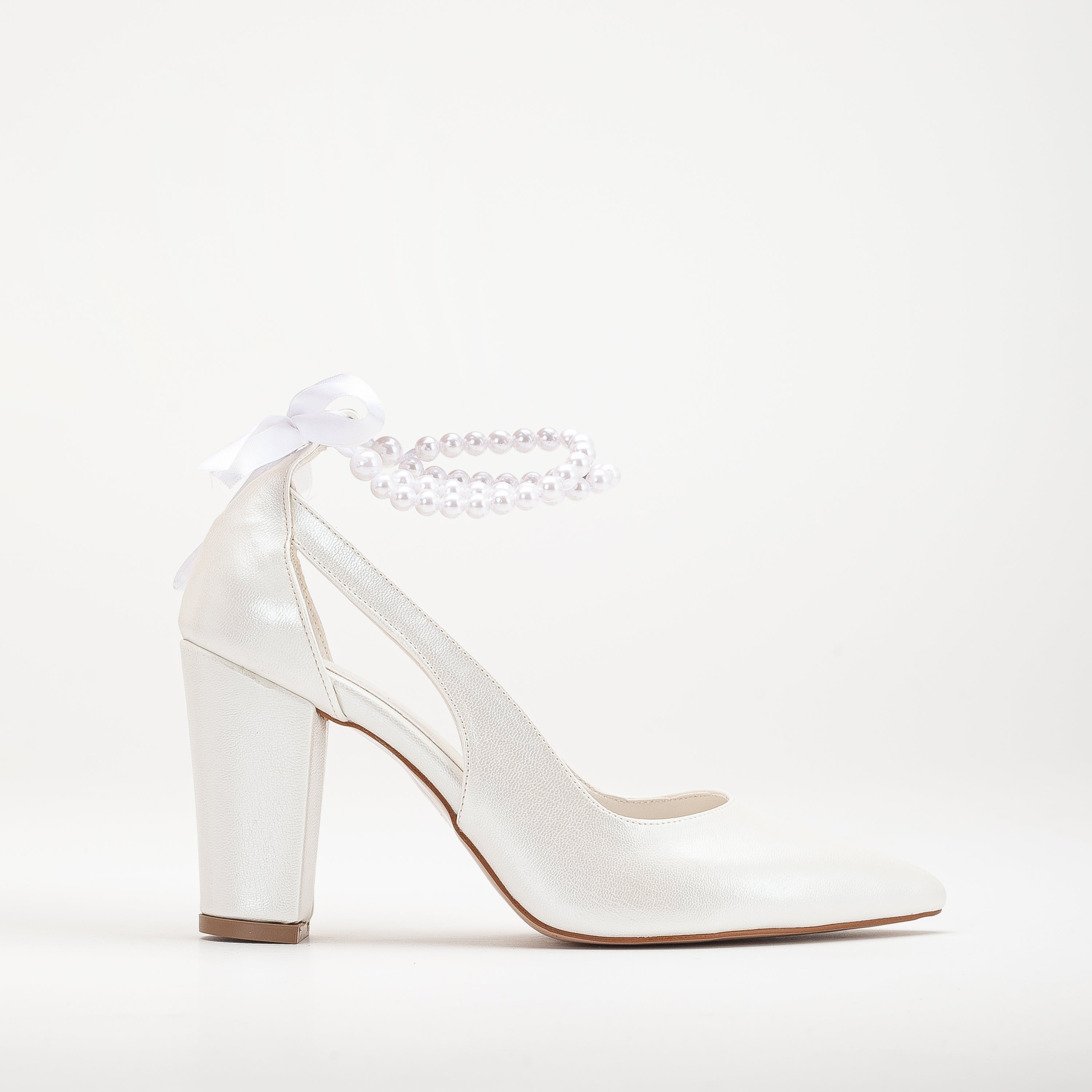 • With a comfortable heel height of 3.5 inches (9 cm), these Ivory Wedding Shoes will keep you dancing all night long without sacrificing style or comfort. • Crafted from high-quality vegan leather, these bridal block heels are stylish and comfortable. The sleek design of the block heel and the double pearl ankle strap provides a secure fit, while the chic ivory color adds a touch of simplicity and chicness to any bridal ensemble. • These bridal block heels are versatile enough to be worn for a variety of occasions. Whether you're looking for bridal high heels, wedding shoes, wedding heels or stylish ivory heels, these ivory shoes are sure to fit the bill. Box Contents: Your package will include 2 distinct sets of Ankle Straps: 1 x Double Pearl Ankle Strap with Satin Ribbon1 x Regular Ivory Ankle Straps These shoes are designed to fit true to size, so we recommend ordering your regular size.
