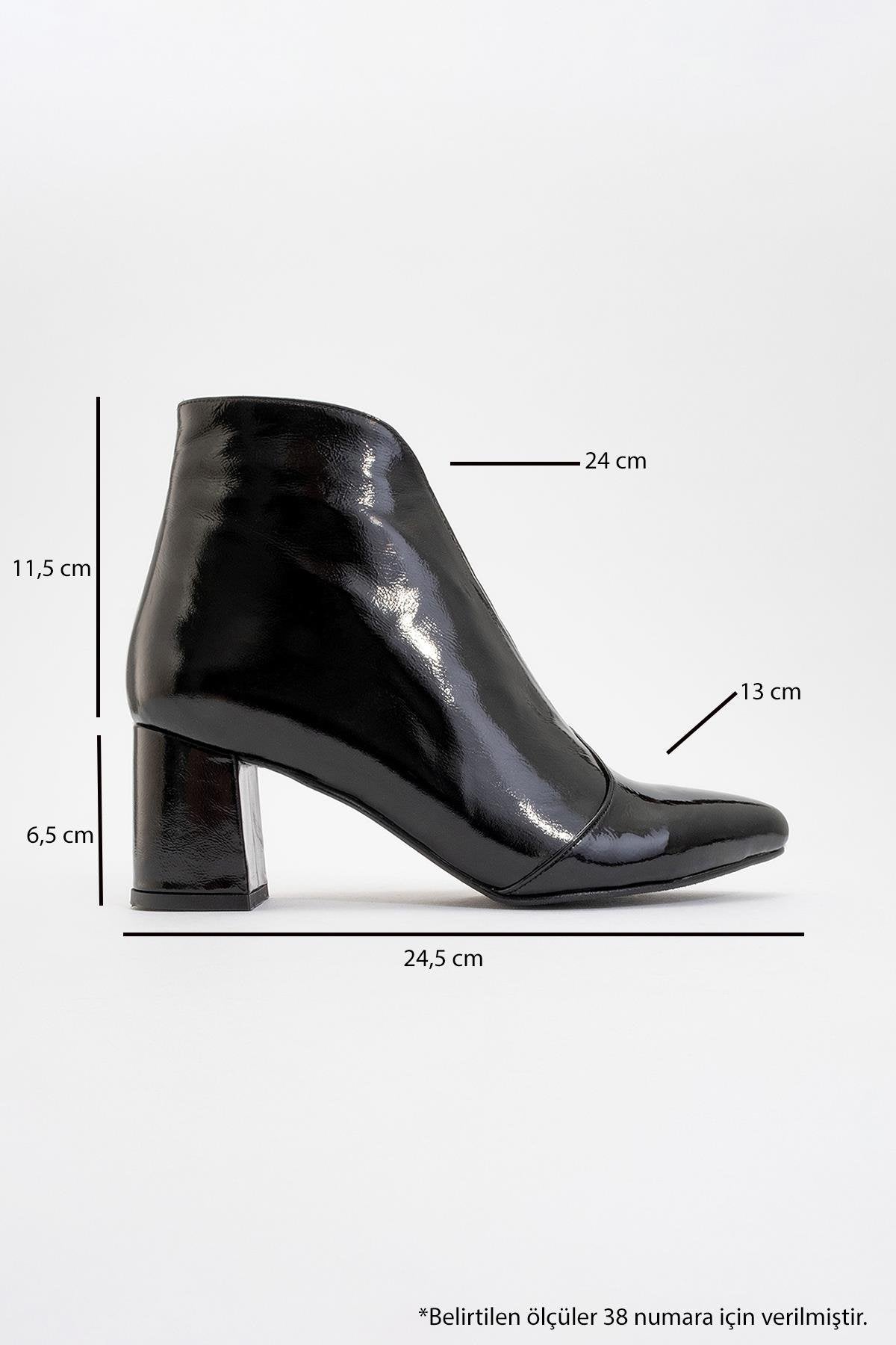 Finda Black Patent Leather Block‑Heel Boot (Women)