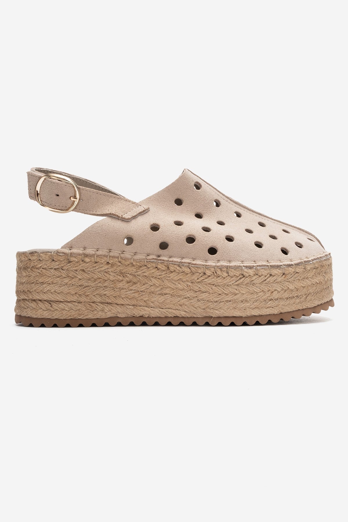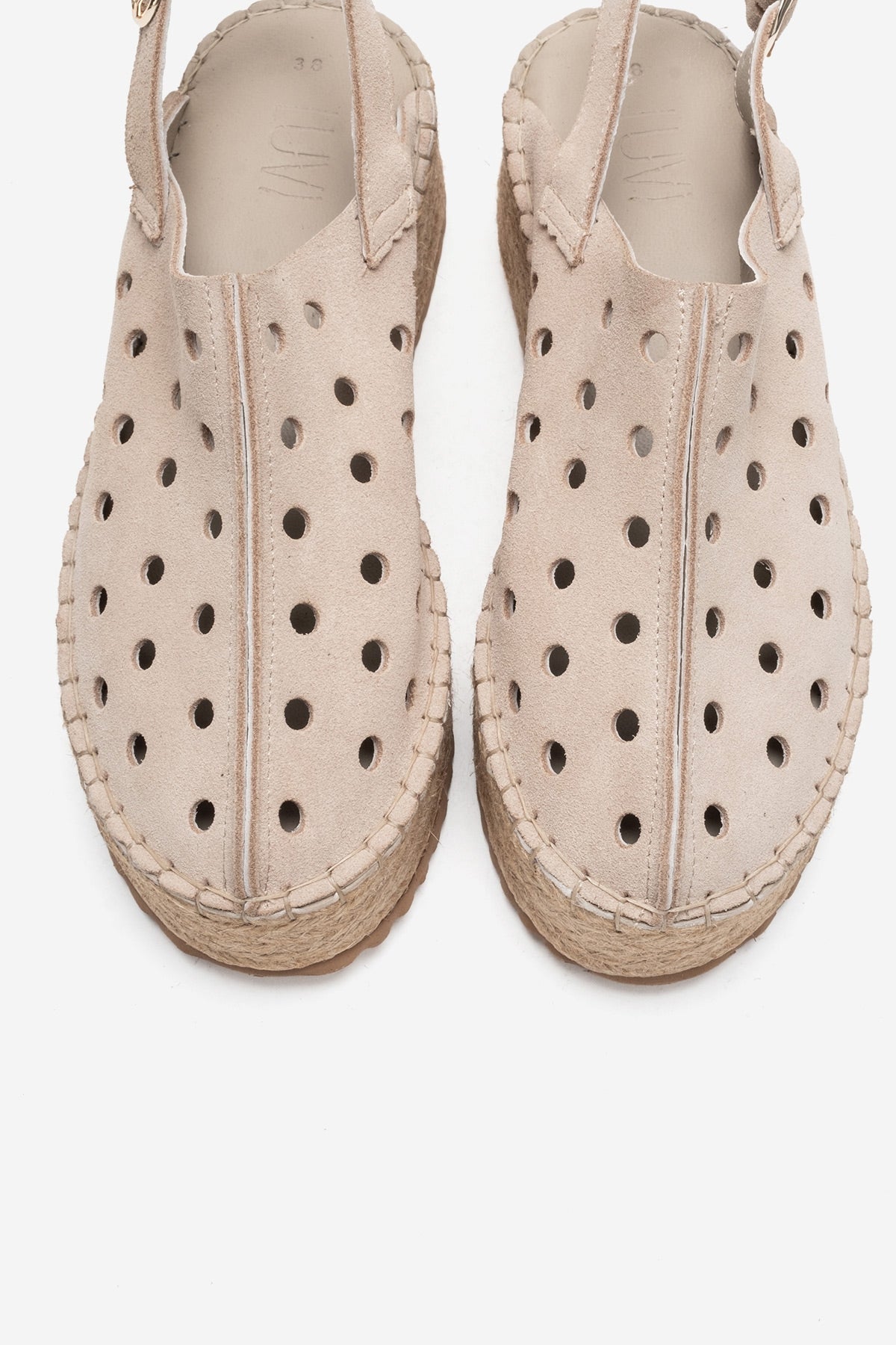 FRAGA - Beige Genuine Suede Leather Woven Platform Sandal (Women)