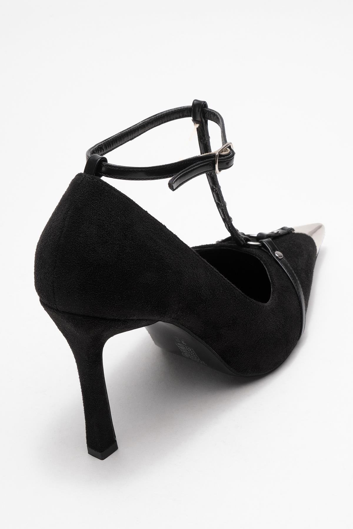 Juliana - Black Strapped Metallic Toe Heeled Shoe (Women)