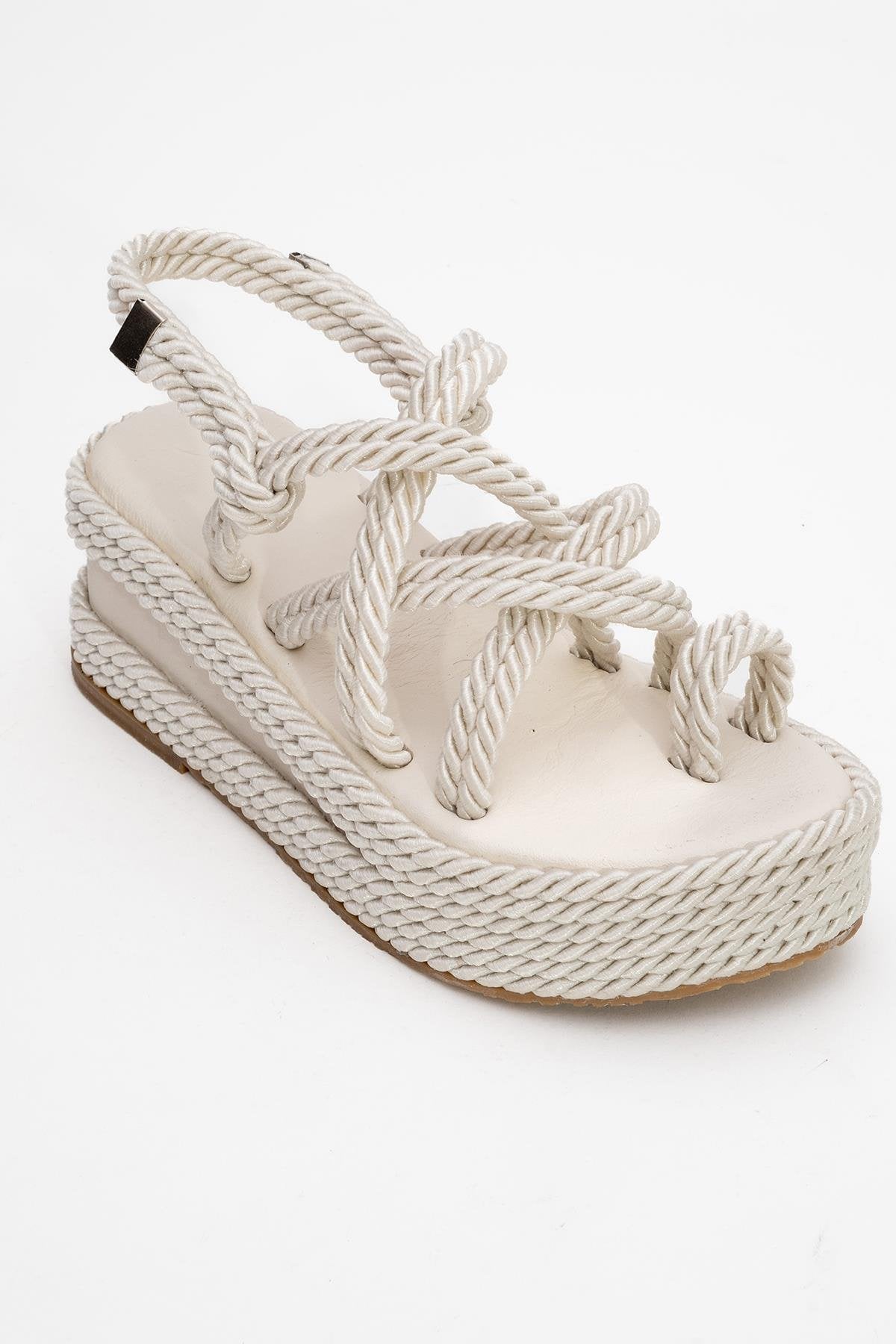 Juney - Beige Genuine Leather Lace-Up Wedge Sandal (Women)