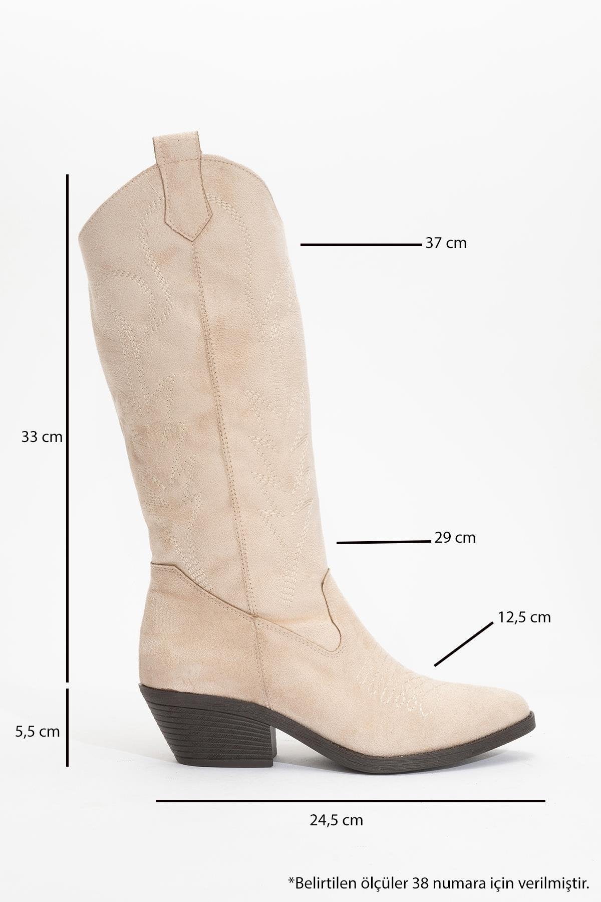 Liana - Beige Suede Chunky Heel Western Boot (Women)