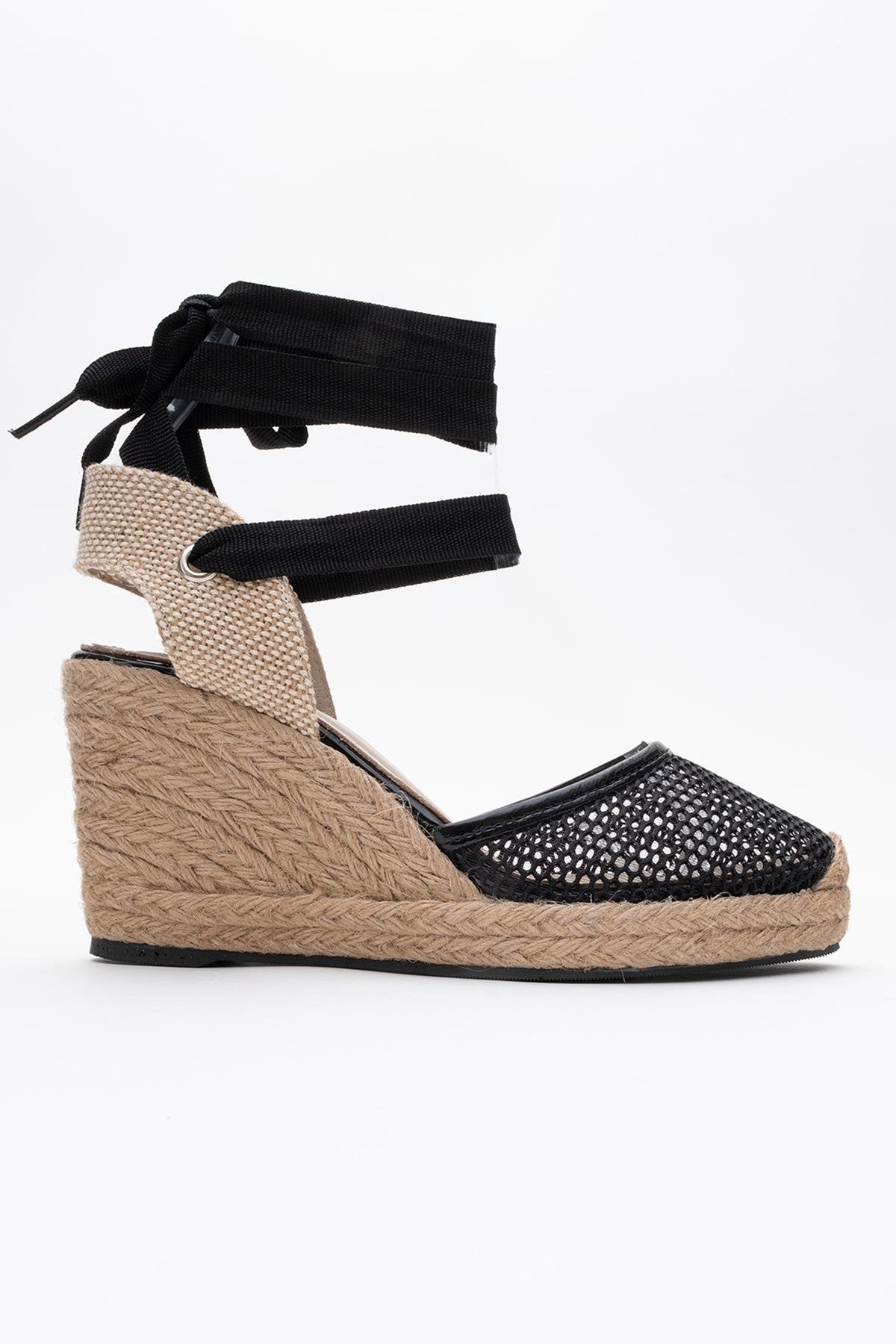 Lions - Black Mesh Leather Wedge Espadrilles Sandal (Women)