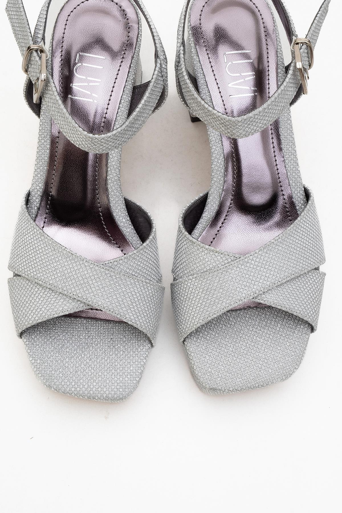 Lisbon - Silver Glitter Cross-Strap Platform Heel Shoe (Women)
