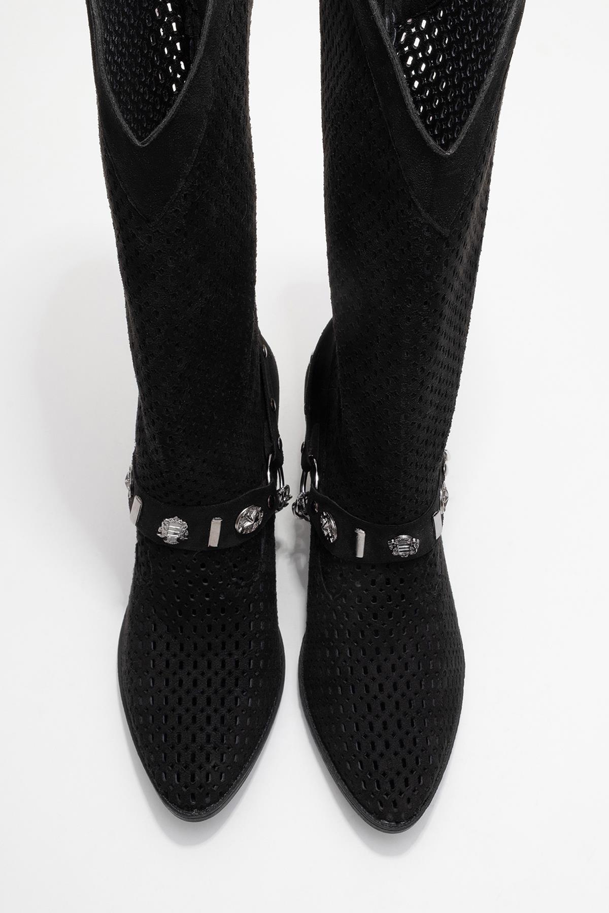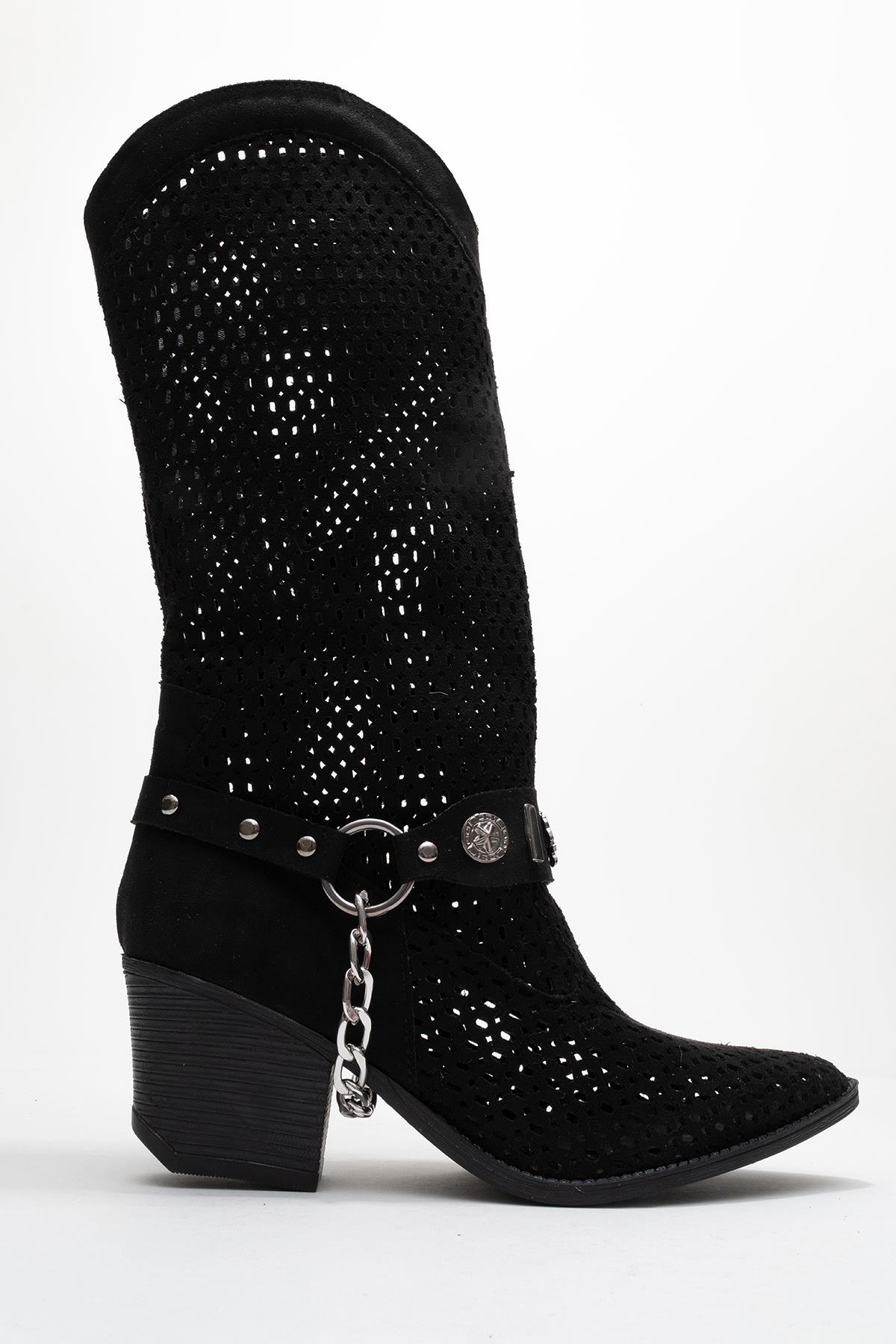Liza Boots from Prologue Shoes by Forever & Always Shoes offer a fresh take on western-inspired elegance. Crafted from high‑quality faux leather with genuine leather lining, they blend breathable comfort with structured form. The stand‑out perforated pattern adds subtle detail without compromising versatility. Designed with a slip-on silhouette and a decorative buckle strap, the structured shaft and 6.5 cm (approximately 2.56 inches) block heel offer confident lift and stability for everyday wear. Built on a TPU sole, these boots provide reliable traction across varied surfaces, ideal for urban and transitional dressing. Handmade in Turkey with meticulous craftsmanship, the Liza Boots run true to size, delivering a flattering and consistent fit. With their streamlined western silhouette and comfortable structure, they make a stylish companion to everything from tailored trousers to fluid tunic dresses.