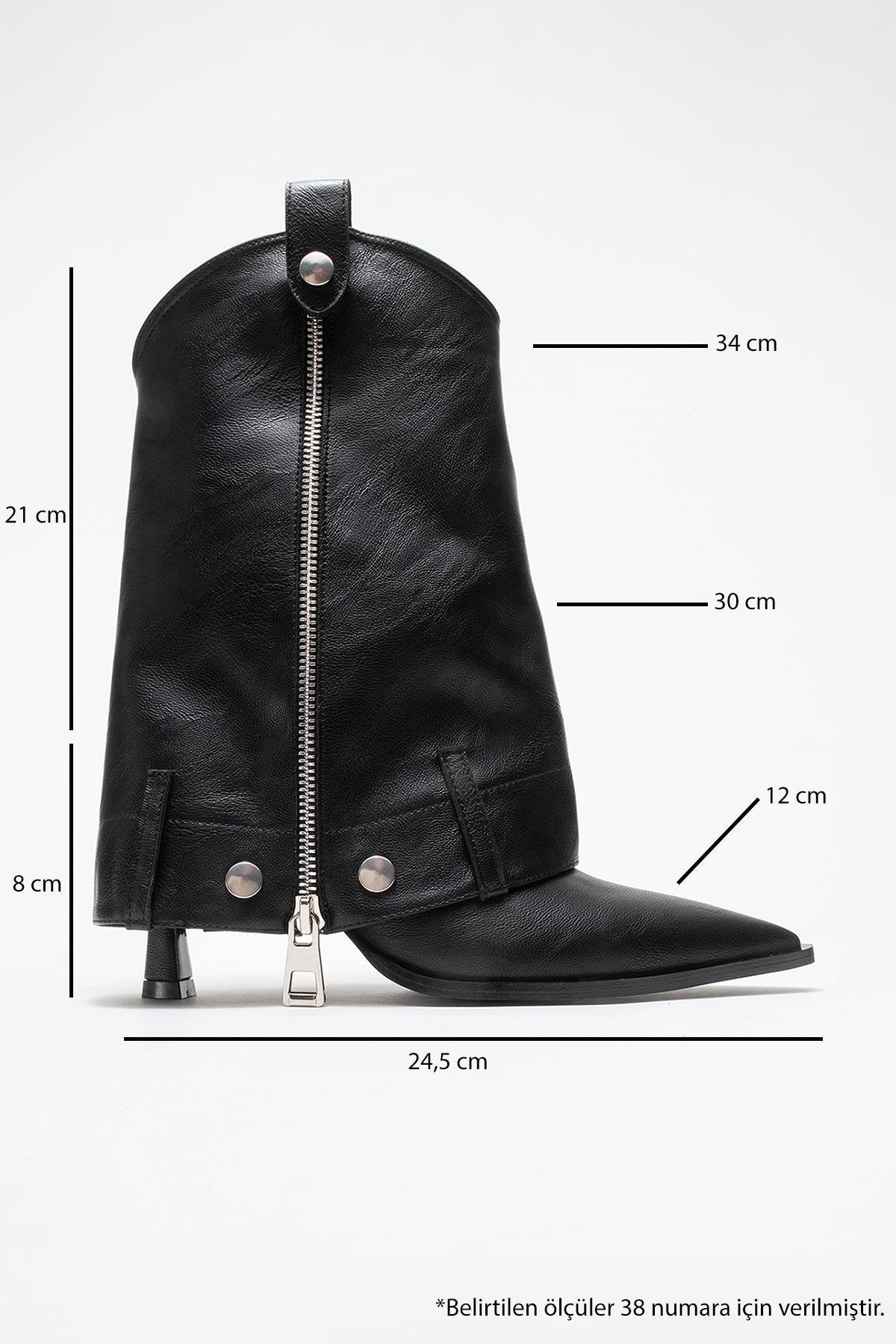 A versatile heeled boot that pairs timeless structure with bold metallic accents | 3.1" (8 cm) heel | 8.2" (21 cm) shaft | 11.7" (30 cm) ankle circumference | 13.3" (34 cm) calf circumference | 4.7" (12 cm) forefoot width | Synthetic leather upper / textile lining / neolite sole | Handmade in Turkey, true to size