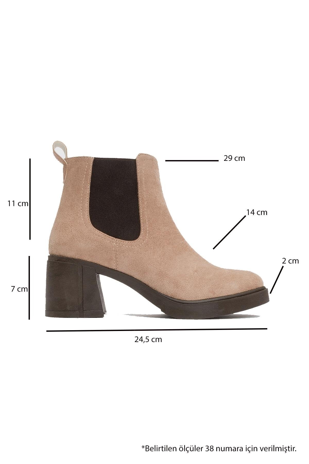 A versatile ankle boot designed for effortless refinement and lasting comfort. | 2.7" (7 cm) heel | 4.3" (11 cm) shaft | 11.3" (29 cm) ankle circumference | 5.5" (14 cm) forefoot width | Synthetic suede upper / Synthetic suede, warm lining / TPU sole | Handmade in Turkey, true to size
