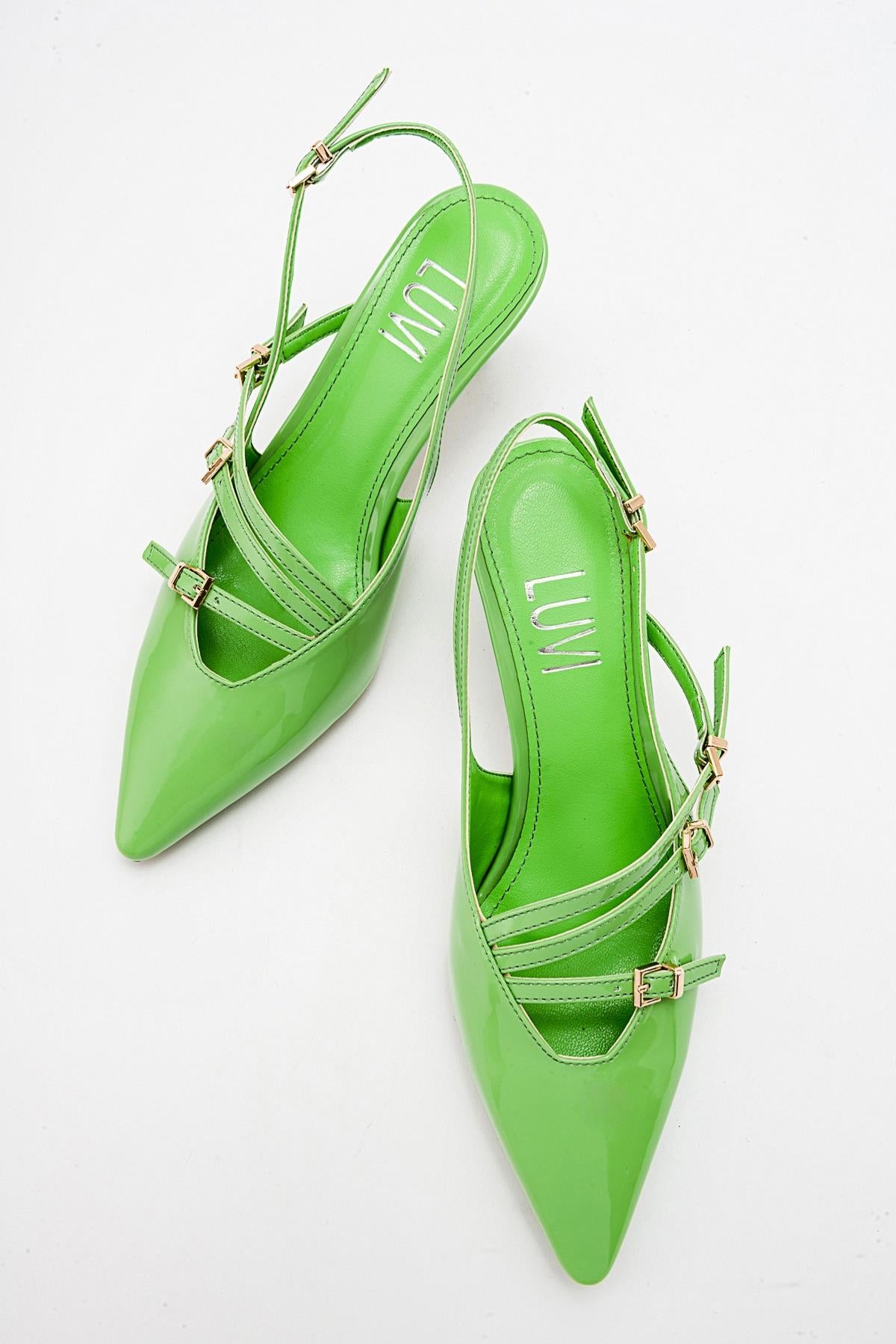 Magra Green Patent Pointed-Toe Slingback Stiletto (Women)