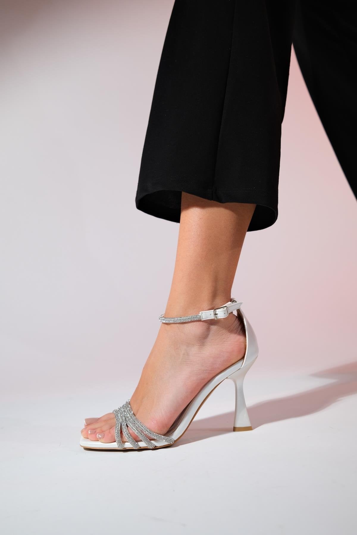 A refined evening stiletto embellished with sparkling stones for a graceful, modern silhouette | 3.5" (9 cm) heel | Synthetic leather upper / synthetic leather lining / neolite sole | Handmade in Turkey, true to size