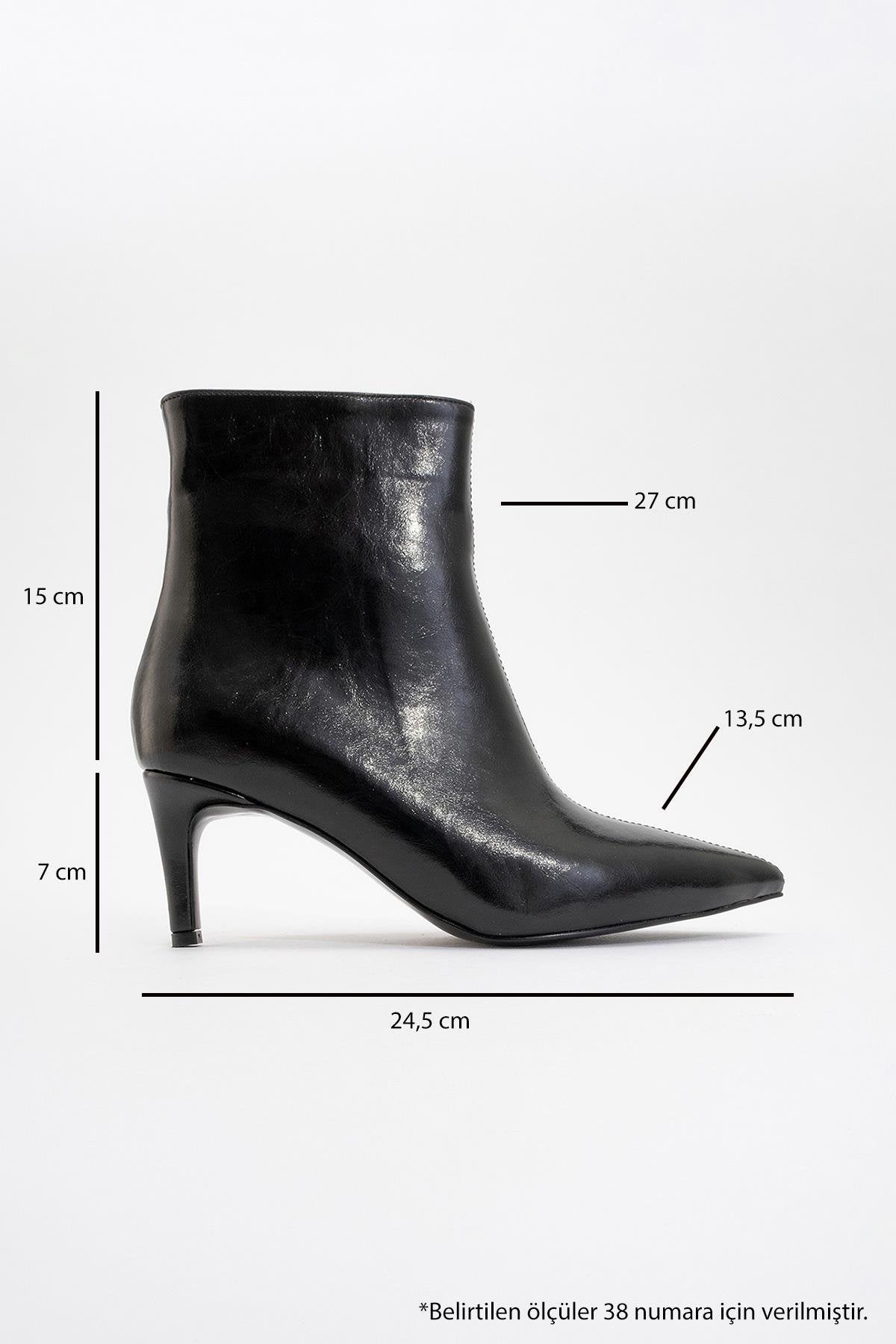 A timeless, refined boot that elevates day-to-night dressing with a sleek silhouette | 2.7" (7 cm) heel | 5.9" (15 cm) shaft | 10.5" (27 cm) ankle circumference | 5.3" (13.5 cm) forefoot width | Synthetic leather upper / warm lining / neolite sole | Handmade in Turkey, true to size