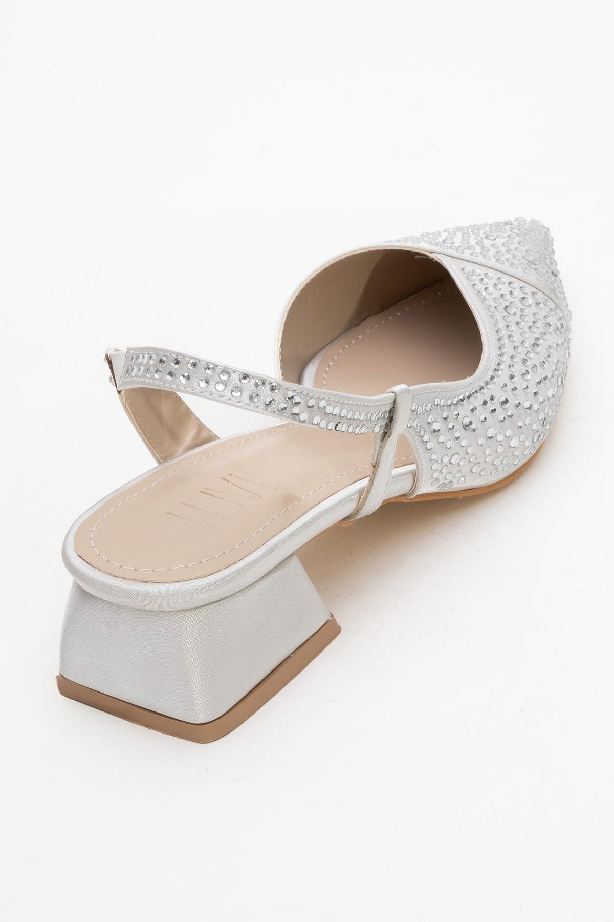 Sella - Silver Jeweled Low Heel Shoe (Women)